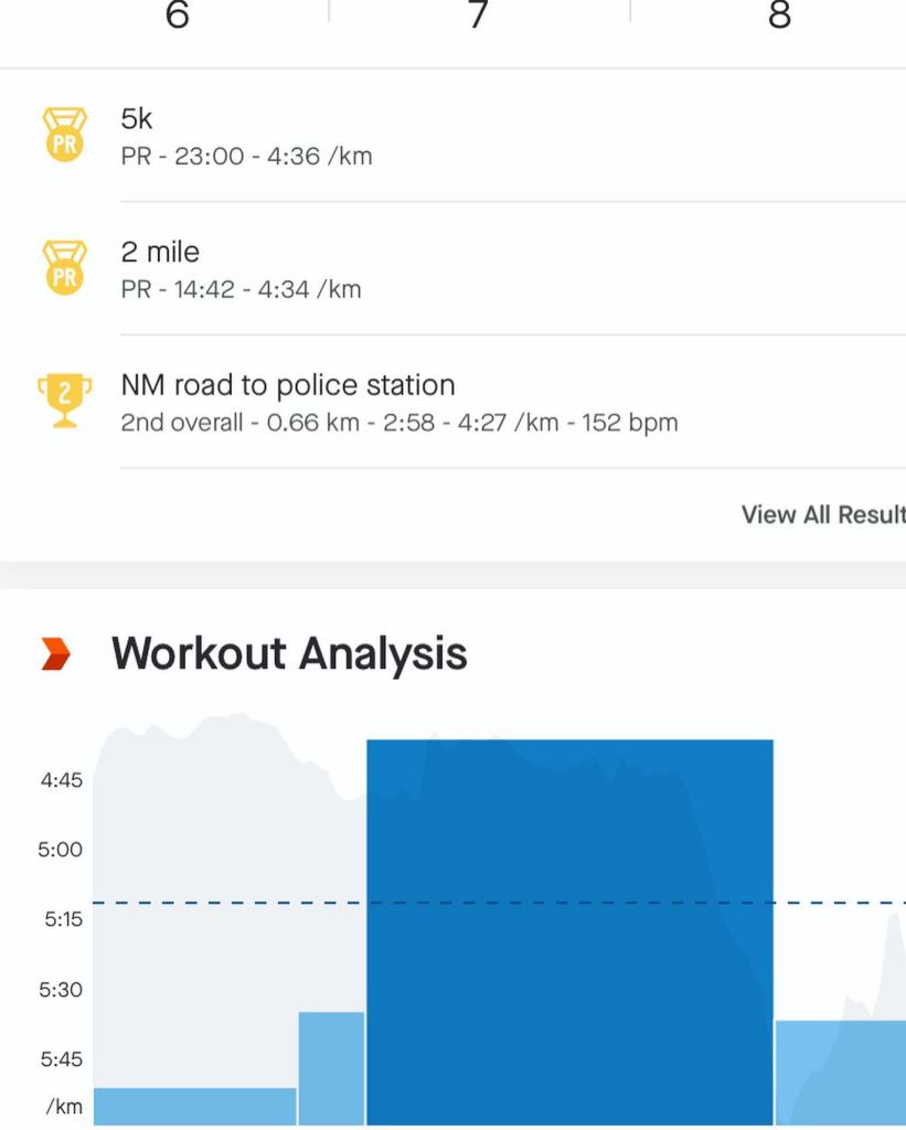 And closed the month with a 5k PB. My last 5k best was in 2018 when i had a 23:38. Managed sub-23 this time with a 22:59. This was the confidence i needed for a while. Most mornings when there is a hard workout I get up with a thousand excuses to skip running. I have a fear of failure! To me this is a milestone moment.