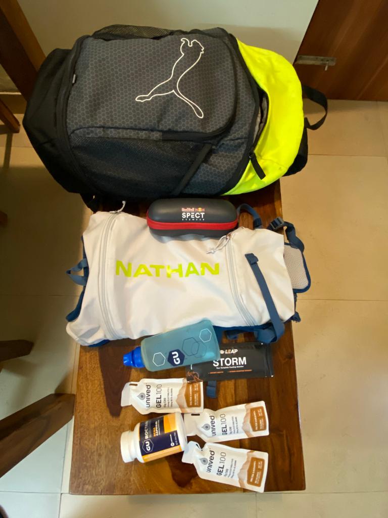 I had then my check-in bag packed and my race bag was laid out. (i race with a hydration bag to avoid to avoid the rush at the aid stations.)